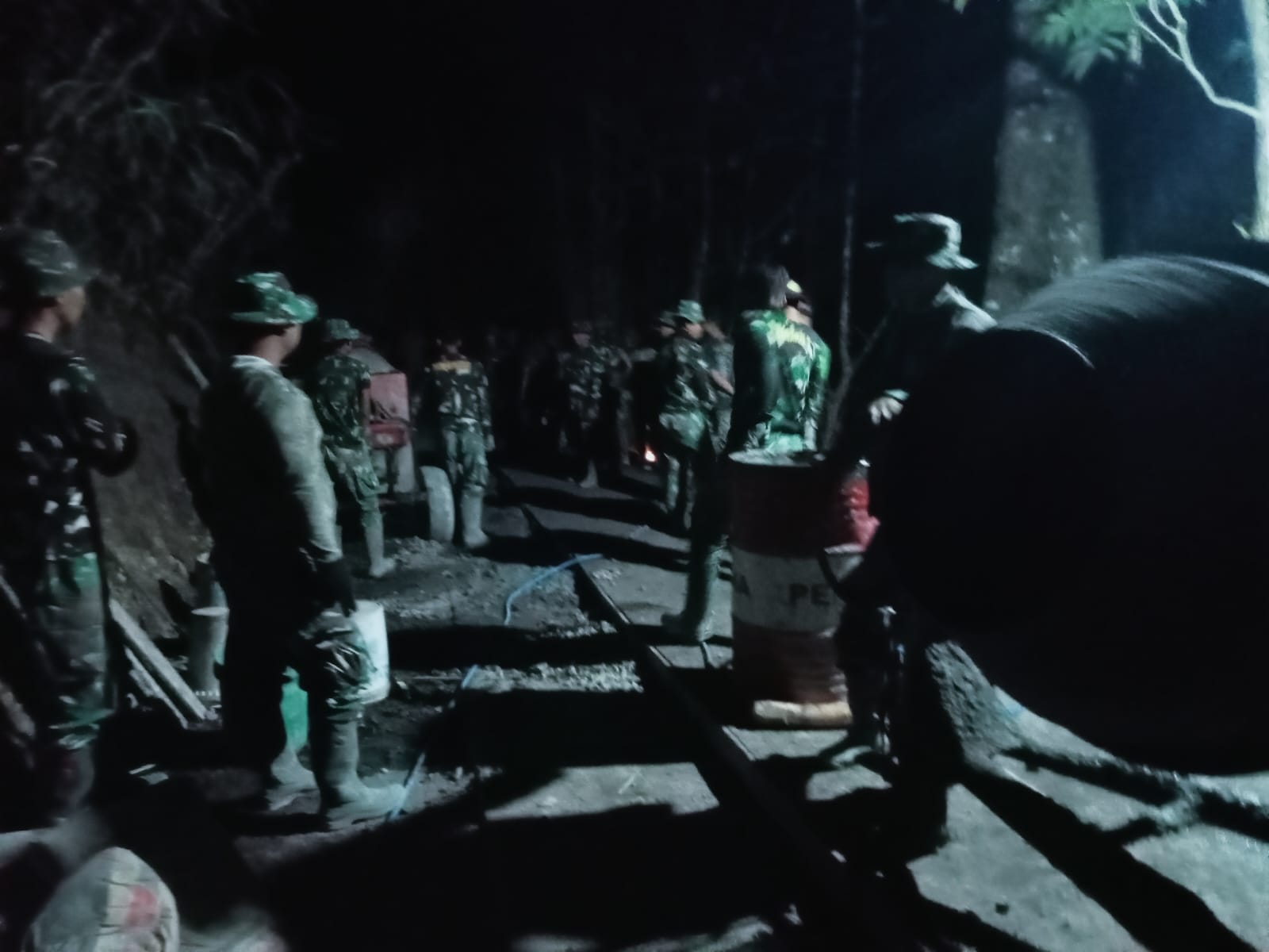 Purworejo – Kamis malam, usai melaksanakan sholat isya berjamaah, tim satgas TNI Manunggal Membangun Desa (TMMD) ke 118 Kodim 0708/Purworejo bersama warga yang mendapat giliran shift malam mulai bergerak menuju lokasi Pengecoran Jalan Rabat antara Desa Kalitapas dan Desa Benowo yang menjadi salah satu sasaran fisik pada program TMMD Kodim Purworejo.