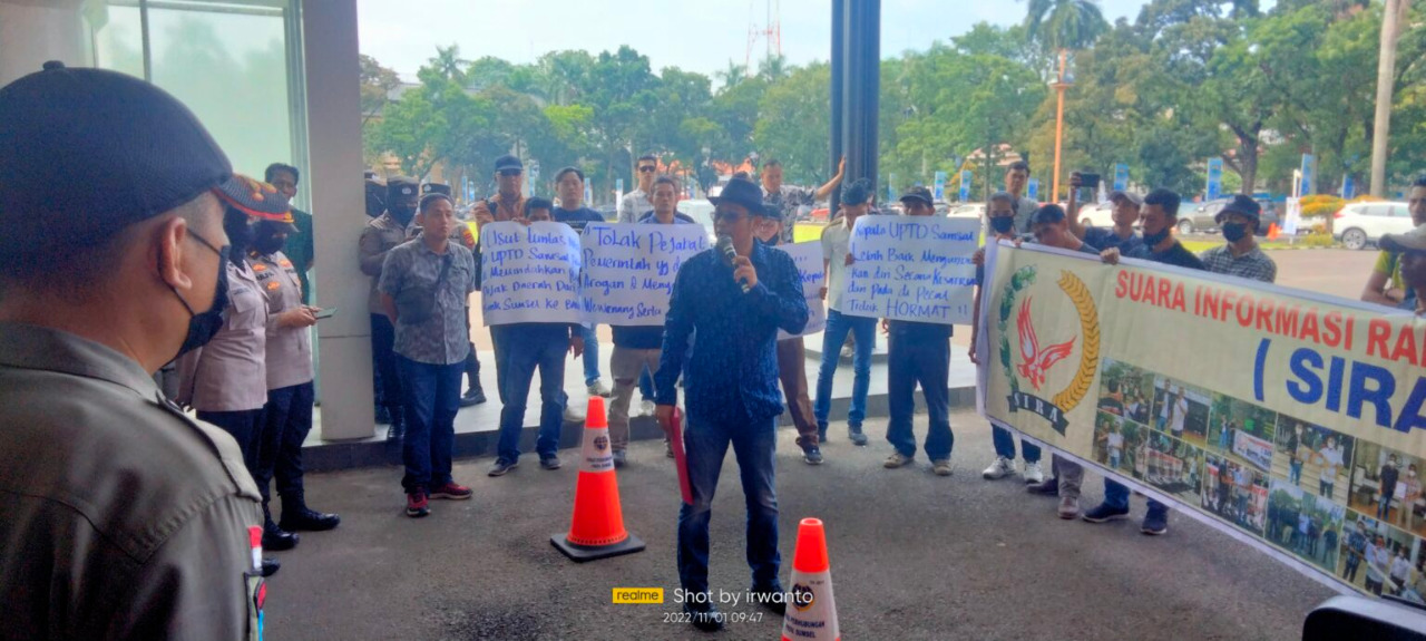 ”Menyikapi permasalahan ini, kami menilai bahwa pernyataan yang telah dilontarkan oleh seorang oknum Kepala UPTB Samsat Palembang III sebagai perpanjangan tangan Gubernur Sumsel di bidang pengelolaan perpajakan daerah ini tidaklah etis sehingga diduga sudah menyalahi aturan dan kewenangannya. Mengingat bahwa kewenangan untuk menghentikan, merubah atau memindahkan penerimaan pembayaran pajak daerah ke bank lain bukan kewenangan seorang Kepala UPTB, dan hal itu tertuang dalam Keputusan Gubernur Sumatera Selatan Nomor 898/KPTS/BPKAD/2021 tentang penunjukan PT. Bank Sumsel Babel sebagai tempat Penyimpanan Dana Kas Umum Daerah Pemerintah Provinsi Sumatra Selatan. Maka dari itu demi menjaga harkat dan martabat kepemimpinan Bapak Herman Deru sebagai Gubernur Sumsel dari oknum-oknum pejabat yang arogansi dan pejabat yang berani mengangkangi aturan-aturan yang dikeluarkan oleh Gubernur Sumsel, untuk itu lah hari ini Selasa 01 November 2022, kami dari Suara Informasi Rakyat Sriwijaya “SIRA”,” papar mereka.