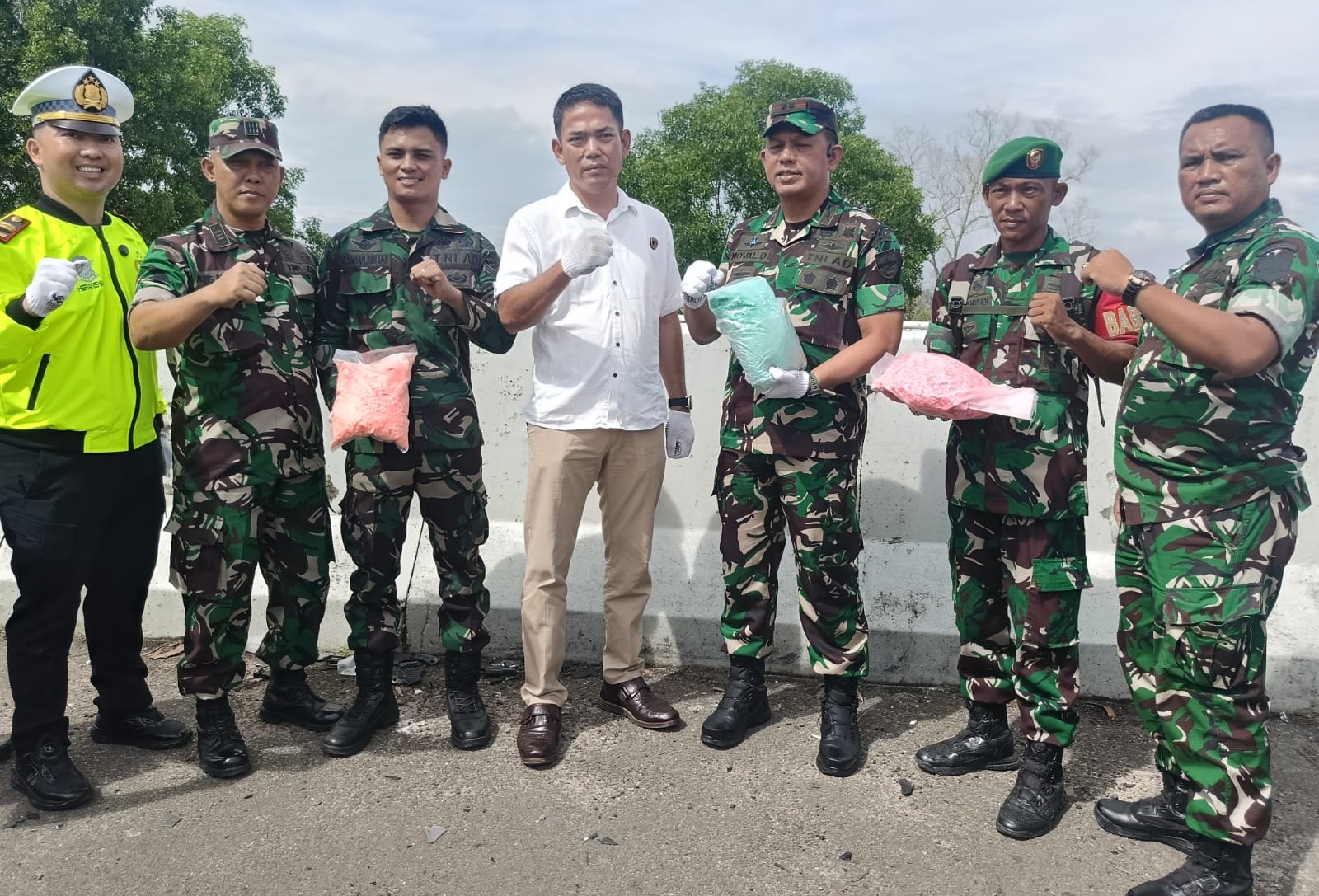 Komandan Kodim 0411/KM Letkol Inf Noval Darmawan,S.H,M.I.P. didampingi Pasi Intel Kapten Inf Zainuri menanggapi langsung laporan tersebut dan langsung mengecek lokasi. Disinyalir isi dalam tas yang dibuang dari mobil SUV tersebut adalah barang-barang Narkoba jenis ekstasi.