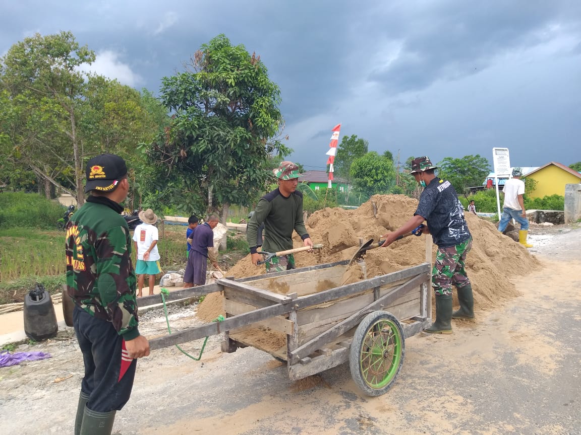 Tidak terkecuali di pelaksanaan program TMMD Reguler 110, Kodim 1011/KLK yang sedang membangun jalan usaha tani sepanjang 1200 meter, beserta sarana penunjangnya seperti pembangunan Mushola, serta pembangunan jamban dan jembatan.