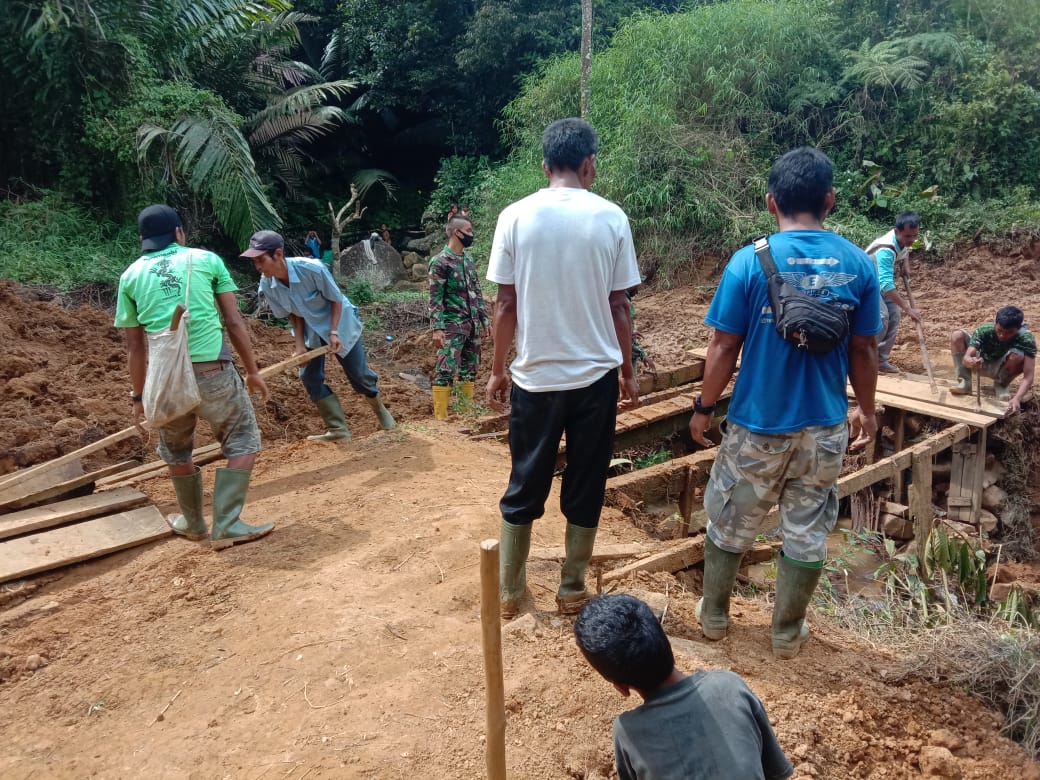 Pagi ini Satgas TMMD Kodim 0212/TS melaksanakan perbaikan jembatan yang rusak di Desa Siuhom, Kec. Angkola Barat, Kab. Tapsel, Serka T. Pangaben, Senin (5/7/2021), mengatakan giat bekerja selesaikan perbaikan jembatan rusak. Tak ada kata malas bagi Satgas yang bertugas selesaikan perbaikan jembatan.
