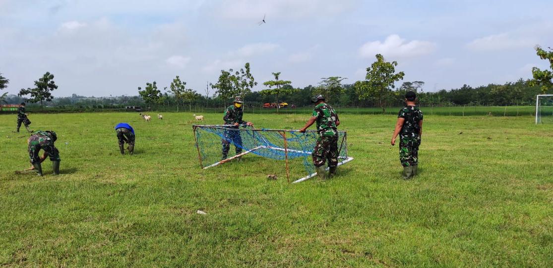 “Karena sedang kita lakukan pembersihan, tiang goalpall kita pindahkan sementara untuk memudahkan pekerjaan pembersihan lapangan,” ungkap Sertu Maskobah saat ditanya media ini.
