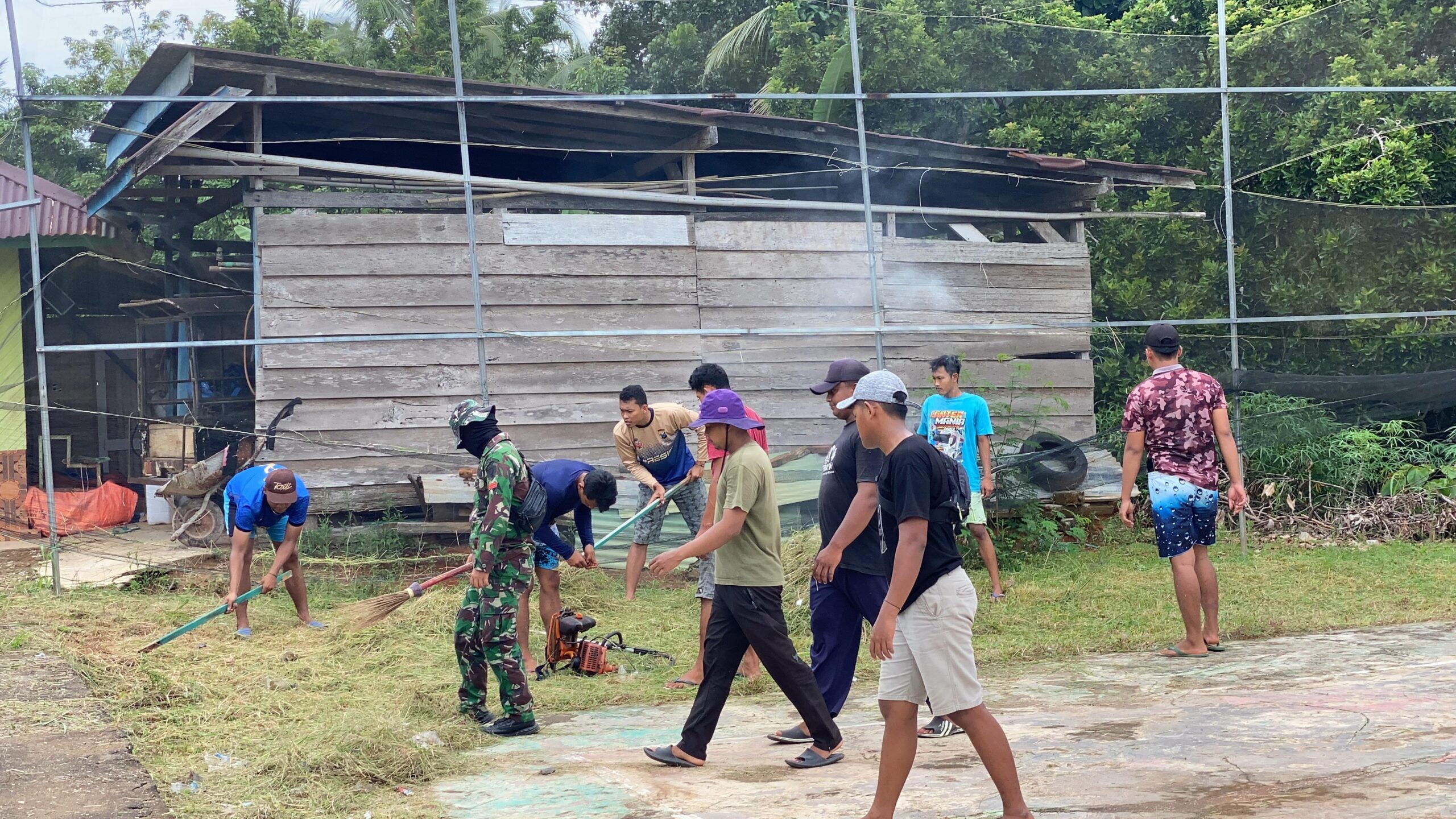 Bersama dengan masyarakat setempat, anggota Satgas TMMD ke-120 Kodim 0423/BU dengan semangat gotong royong melakukan beragam upaya untuk membersihkan lingkungan sekitar. Mulai dari pembersihan sampah, pemangkasan rumput liar, semua dilakukan dengan penuh kekompakan dan kerjasama yang baik.