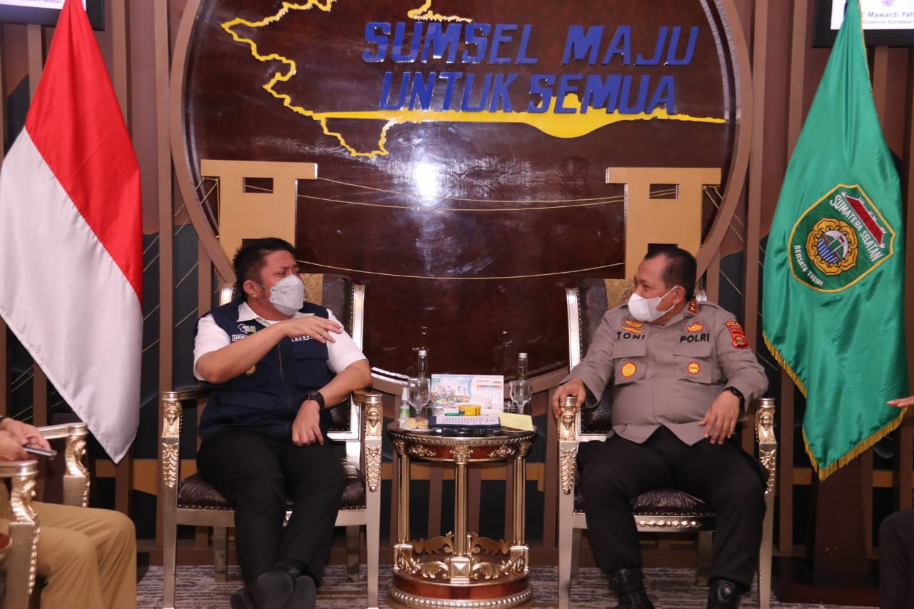 Kliksumatera.com, PALEMBANG– Gubernur Sumsel H Herman Deru menerima kunjungan Kapolda Sumsel Irjen Pol Drs. Toni Harmanto MH di ruang tamu Gubernur Sumsel, Senin (06/09/2021).