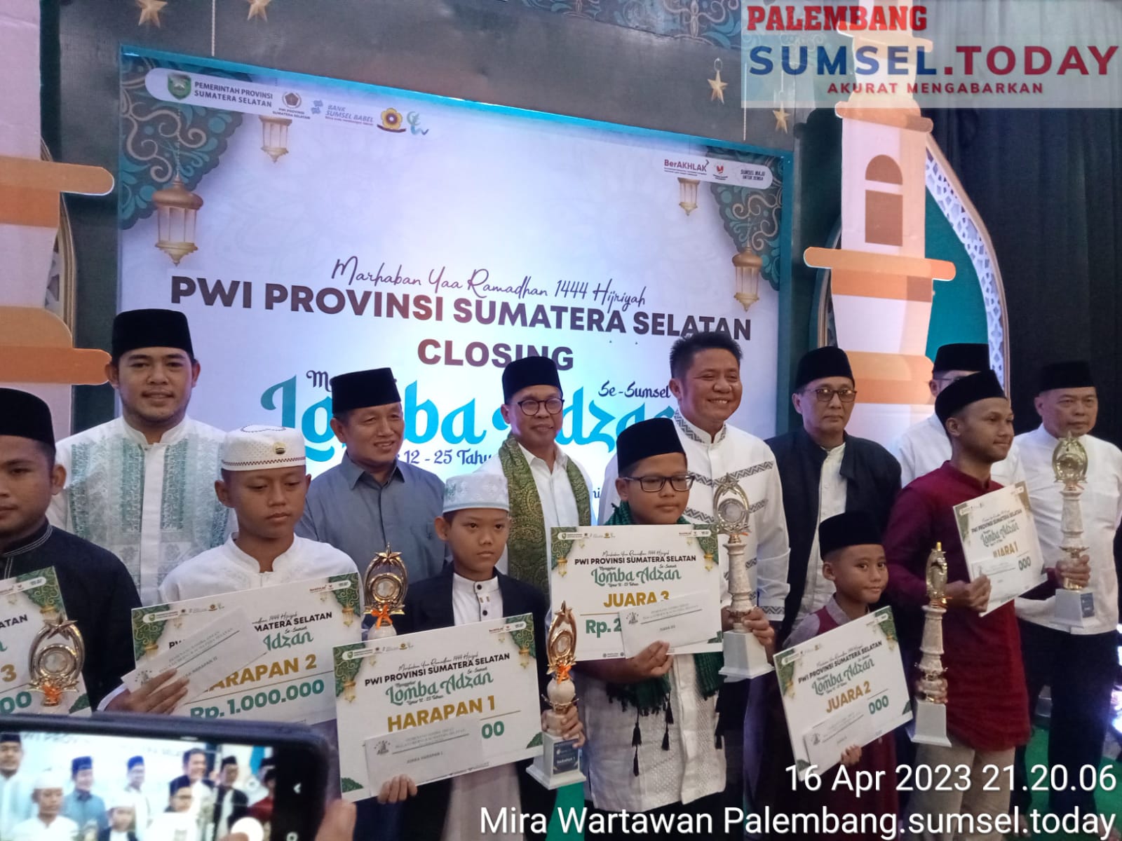 Kliksumatera.com, PALEMBANG- Penutupan Lomba Adzan dan penyerahan hadiah dan tropi dari masing masing pemenang oleh Gubernur Sumsel H. Herman Deru dilaksanakan di Griya Agung, Ahad malam (16/4/2023).