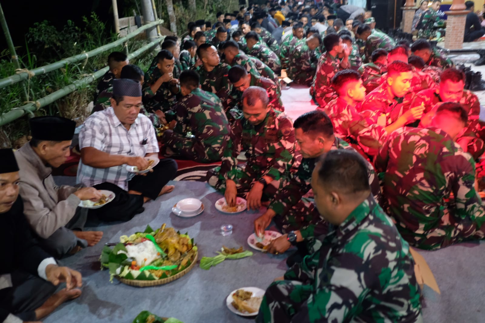Di awali dengan doa bersama di pimpin oleh tokoh agama masyarakat Desa Benowo di lanjutkan dengan pemotongan tumpeng dan makan nasi engkong bersama anggota Satgas Dandim purworejo Letkol Inf yohanes heru wibowo nampak berbaur bersama anggota Satgas dan warga.