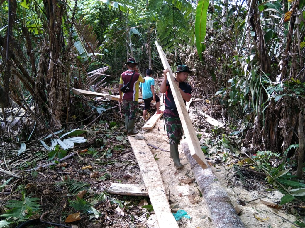 Hari keempat TMMD ke 111 Kodim 0212/TS , Danton SSK Yonif 125/Simbisa Letda Inf H.Sinaga, Jum’at (18/6/2021), mengatakan di lokasi penngergajian terlihat TNI dan rakyat mengangkut kayu hasil gergajian menunju jalan.