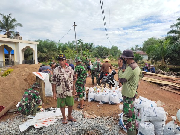 Kubu Raya – Terik matahari yang menyengat tak mengendorkan semangat para personil TNI dan masyarakat di Desa Kuala Mandor B, Kecamatan Kuala Mandor B, untuk memacu pengerjaan pengecoran jalan dan mengangkut material, Rabu (16/06/2021).