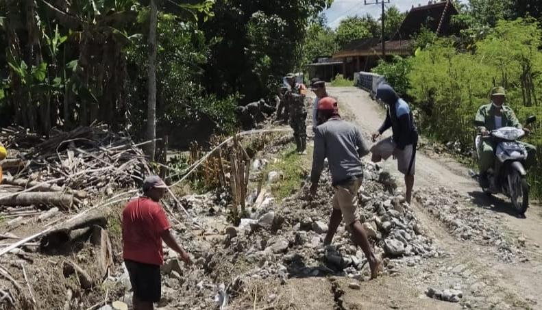“Gotong royong dalam pembuatan gorong-gorong atau saluran air ini, sebagai solusi agar air mengalir ke sungai secara baik dan tidak terjadi luapan,” tegas Koptu Darminto, Rabu(17/3/2021).