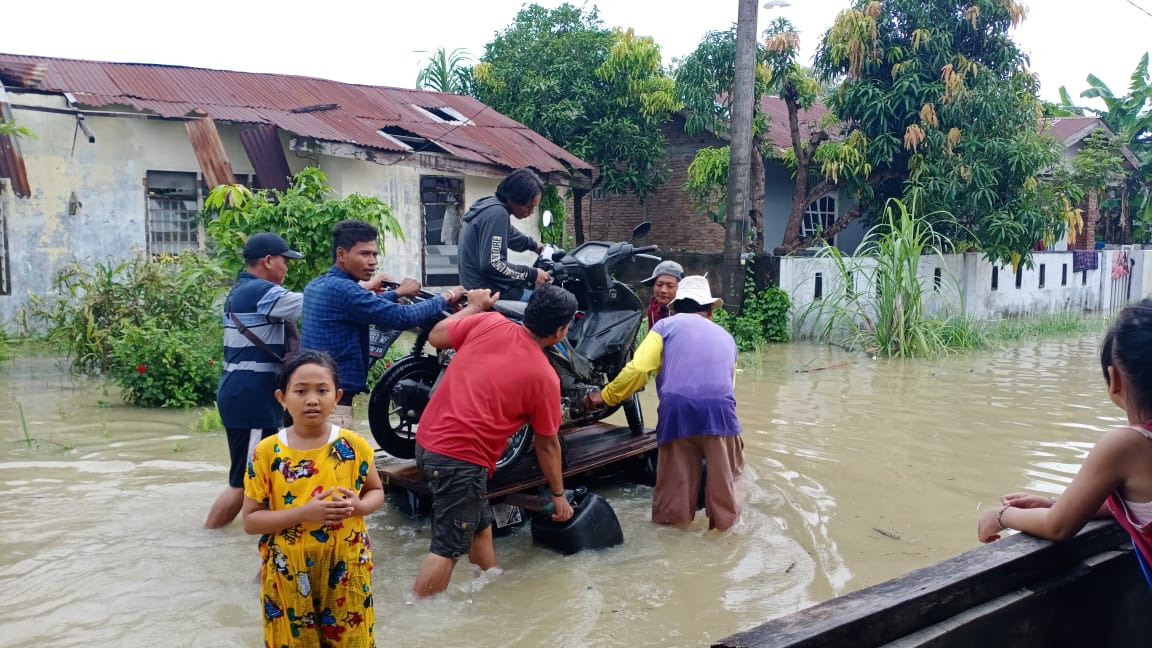 Hujan deras yang terjadi tadi sejak pukul 01.00 Wib hingga subuh tersebut menyebabkan sekitar 150 lebih rumah tergenang air, sehingga menyulitkan aktivitas warga yang ada di sana.
