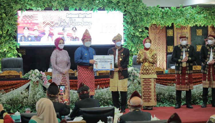 Kliksumatera.com, PALEMBANG– Puncak peringatan Hari Jadi Kota Palembang ke 1338, Kamis (17/6/2021) dengan sidang paripurna istimewa di Gedung Dewan Perwakilan Rakyat Daerah (DPRD) berjalan dengan khitmad, meski di tengah Pandemi Covid-19.