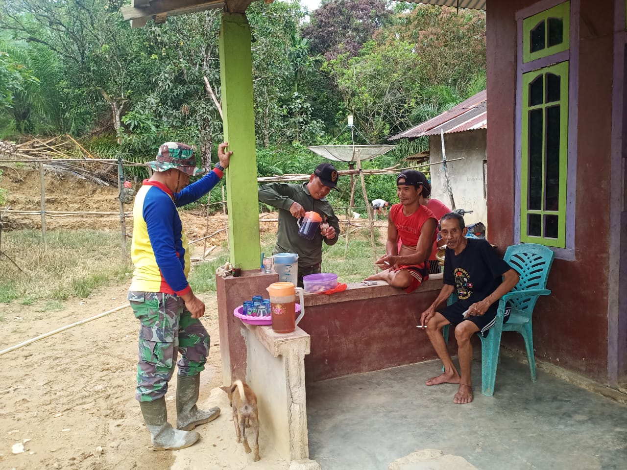Namun demikian pula yang dilakukan oleh Satgas TMMD Ke-111 Kodim 1202/Skw, yang selalu meluangkan waktu untuk ngopi bareng di rumah warga setempat.