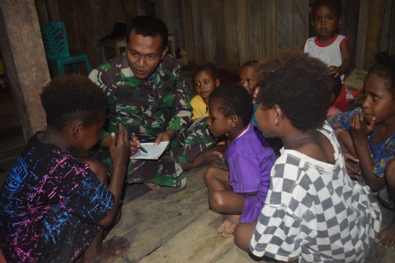 Hal ini dilakukan, karena pola pembelajaran yang diterapkan yakni bermain sambil belajar. menjadi seorang guru tidaklah mudah. Meski demikian, dia harus menjadi guru untuk mengajarkan anak-anak tentang wawasan nusantara, membaca, dan berhitung agar kelak anak anak yang ada dikampung menjadi generasi penerus bangsa yang cerdas. Tutur Serda Maliono