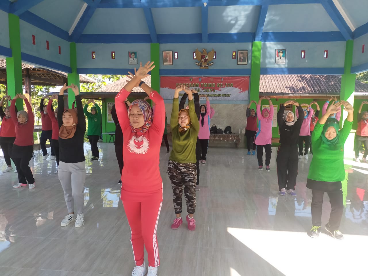 Bojonegoro- Di tengah kesibukkan mengerjakan berbagai sasaran fisik dalam kegiatan TNI Manunggal Membangun Desa (TMMD) ke-110 Kodim 0813/Bojonegoro. Para personel Satgas tetap menjaga kebugaran fisik dengan melakukan olah raga.