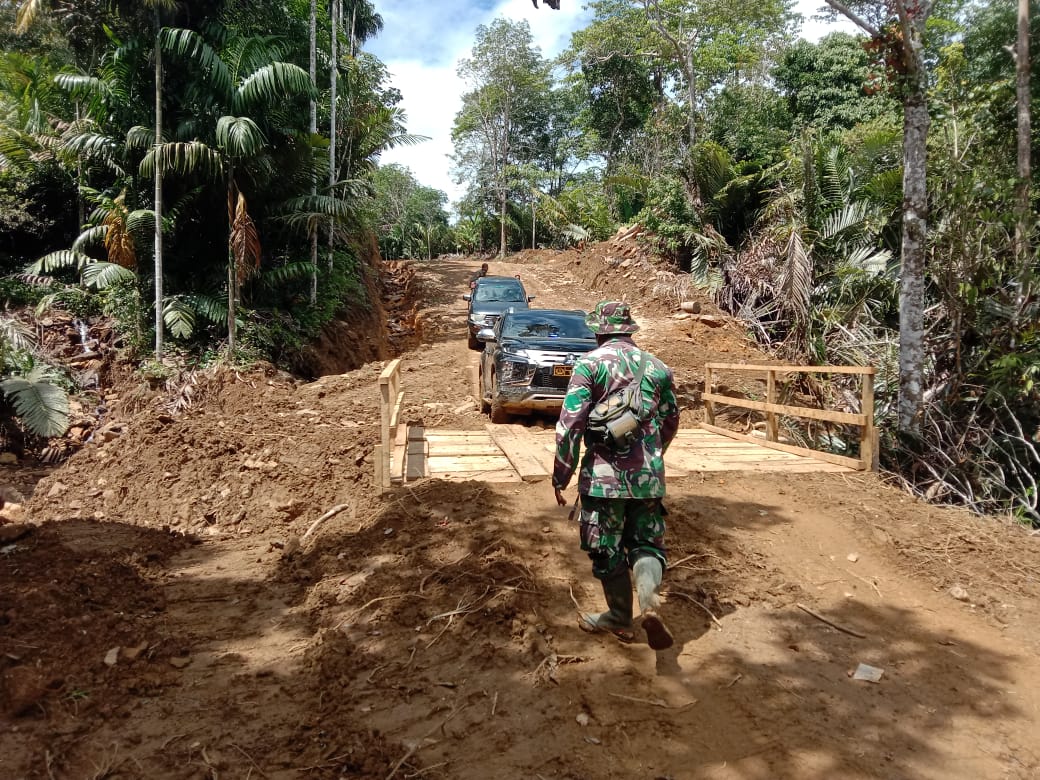 Pada saat kunjungan Bupati ke lokasi melewati jalan tersebut. Keadaan jalan di lokasi TMMD masih baru dan lembek. Diperparah jika hujan turun membuat kubangan lumpur.