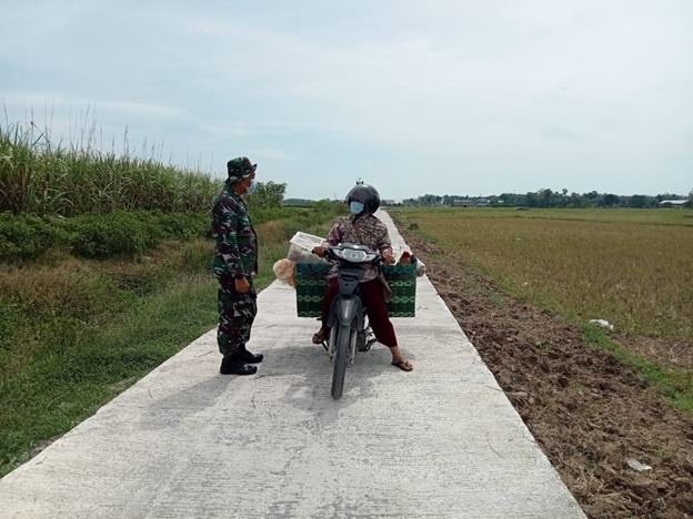 KABUPATEN PATI — Program pengecoran jalan oleh Satgas TNI Manunggal Membangun Desa (TMMD) Reguler Ke-111 Kodim 0718/Pati membawa berkah bagi sejumlah pedagang sayur keliling di Desa Tamansari, Kecamatan Jaken, Kabupaten Pati, Sabtu (17/07/2021).