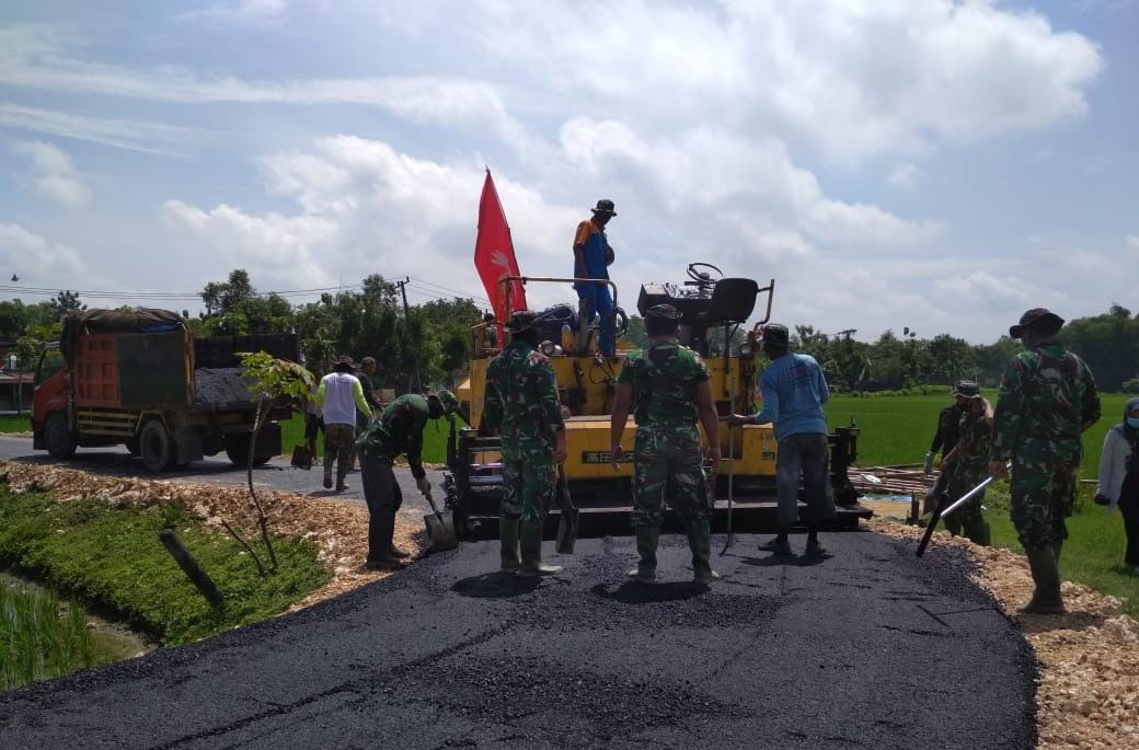 Sejak dibukanya kegiatan TMMD ke-110 di Desa Ngrancang, Kecamatan Tambakrejo, Kabupaten Bojonegoro, Jawa Timur, dan juga dilakukannya pekerjaan pembangunan jalan aspal oleh Satgas TMMD ke-110 hingga saat ini sudah mencapai 60 persen. (Pendim 0813)