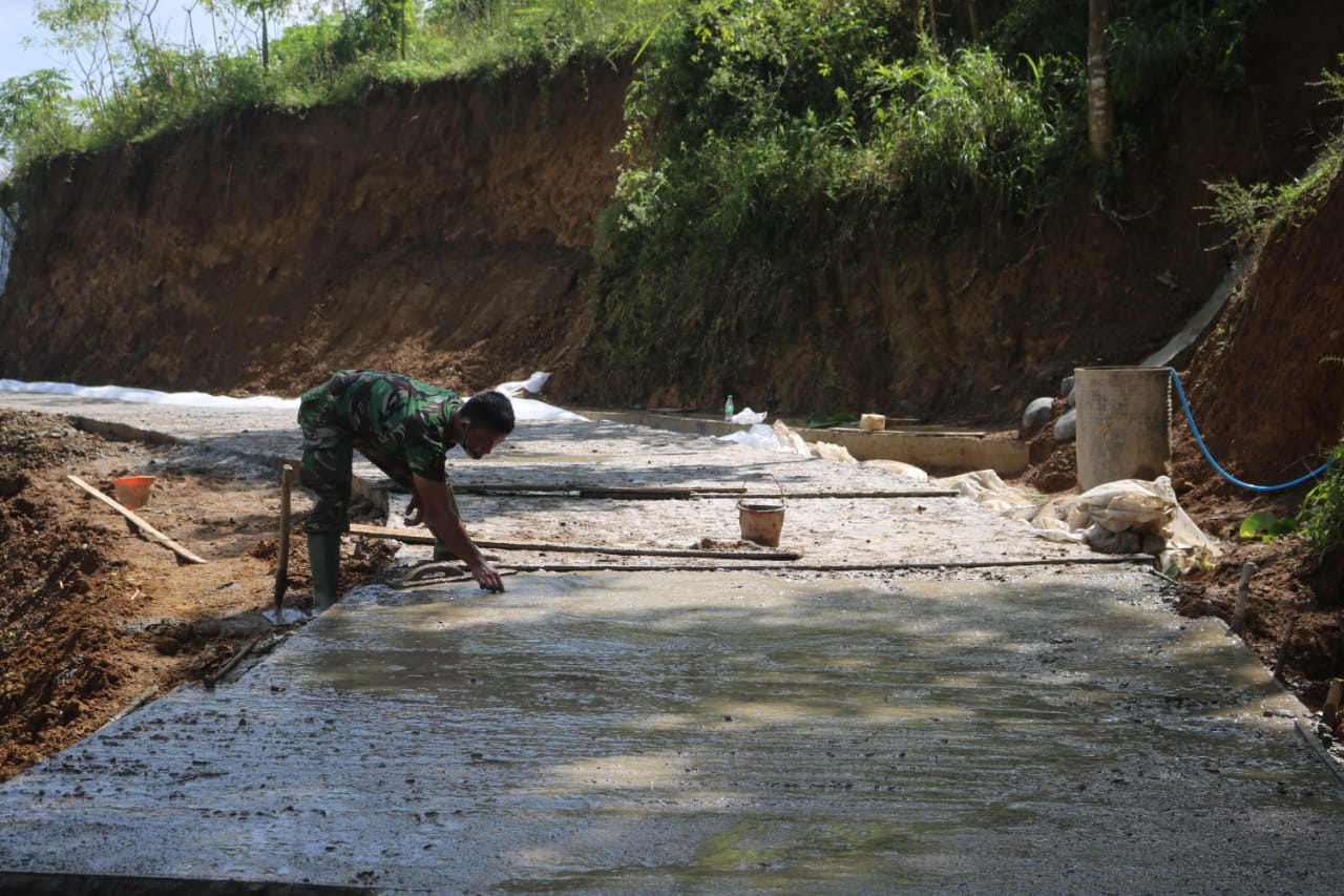 Banjarnegara – Babinsa Kebutuhjurang, Serka Masrur, menyatakan, untuk jalan salah satu sasaran fisik TMMD Reguler ke-111 Kodim 0704/ Banjarnegara, di desa Kebutuhjurang Kecamatan Pagedongan Kabupaten Banjarnegara, Jawa Tengah yang baru selesai dicor sepekan terakhir masih butuh perawatan inten sehingga tingkat kekeringannya benar-benar mumpuni. Kamis (08/7/21).