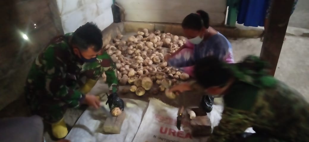 Hal itu seperti yang dilakukan oleh Kopda Anang Yuni salah satu anggota Satgas TMMD ke-110 yang meluangkan waktunya untuk membantu ibu Kandar, warga rt 06 Desa jatimulyo yang berprofesi sebagai pengepul Iles-iles, Rabu (17/3/2021).