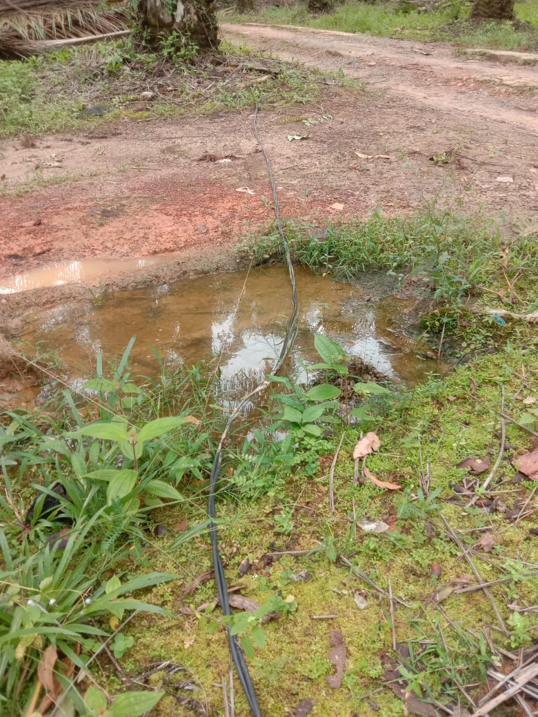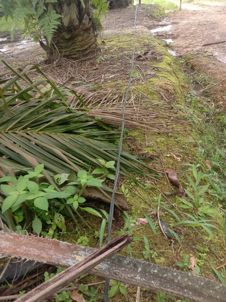 Kliksumatera.com, SEKAYU- Tampak kabel listrik Tegangan Tinggi milik PLN hingga kini dibiarkan melintang sepanjang jalan di atas tanah masuk dalam kawasan perkebunan milik PT. PPKS. Kabel tersebut ada yang tertutup pelepah sawit dan rerumputan. Hal itu tentu saja sangat membahayakan para buruh kebun atau warga sekitar.