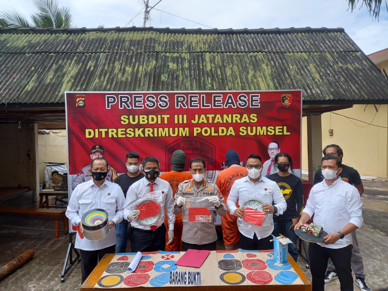 Kabid Humas Polda Sumsel Kombes Pol Supriadi didampingi Kasubdit Jatanras Kompol Cs Panjahitan mengatakan, dari hasil penggerebekan anggota berhasil mengamankan 15 orang. Hanya dua orang ditetapkan sebagai tersangka dimana satu orang Oknum Polri dan satu orang lagi sipil.