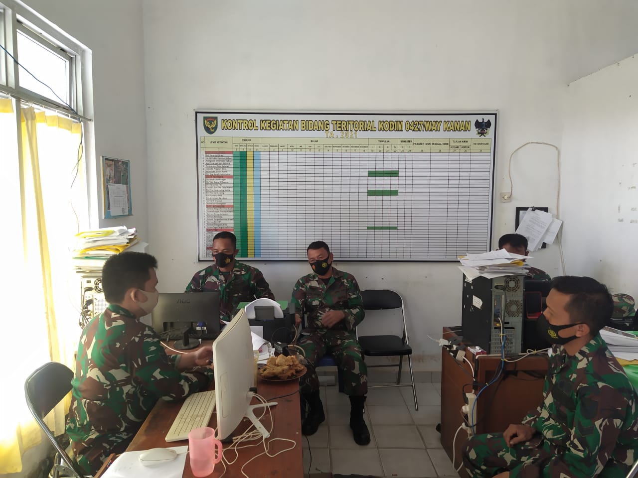 WAY KANAN – Pasiter Satgas TMMD ke – 111 Kodim 0427/Way Kanan Kapten Inf A. Yani Folsen melaksanakan rapat bersama Anggota Staf Ter untuk menyiapkan tentang Acara Pembukaan TMMD ke-111 di Kampung Negeri Batin Kec. Umpu Semenguk Kab. Way Kanan. Rabu (09/06/2021)