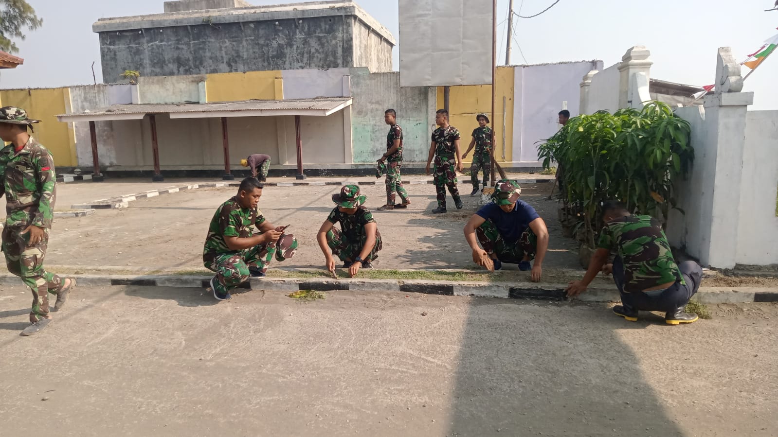 KARAWANG,- Prajurit TNI yang tergabung dalam Satuan Tugas (Satgas) TNI Manunggal Membangun Desa (TMMD) Reguler Ke -116 TA. 2023 Kodim 0604/Karawang melaksanakan kegiatan Kerja Bakti membersihkan Kantor Desa Cemarajaya Kec Cibuaya Kab Karawang, Jum’at (19/05/2023)