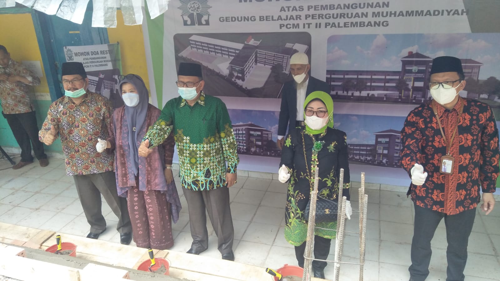 Peletakan batu pertama ini dihadiri Wakil Wali Kota Palembang FitriantI Agustinda yang diwakili Staf Ahli Walikota Bidang Perekonomian Pembangunan Investasi Kota Palembang Ibu dr. Hj. Letizia, M.Kes, Ketua PWM Sumsel Prof. Dr. H. Romli SA, M.Ag.