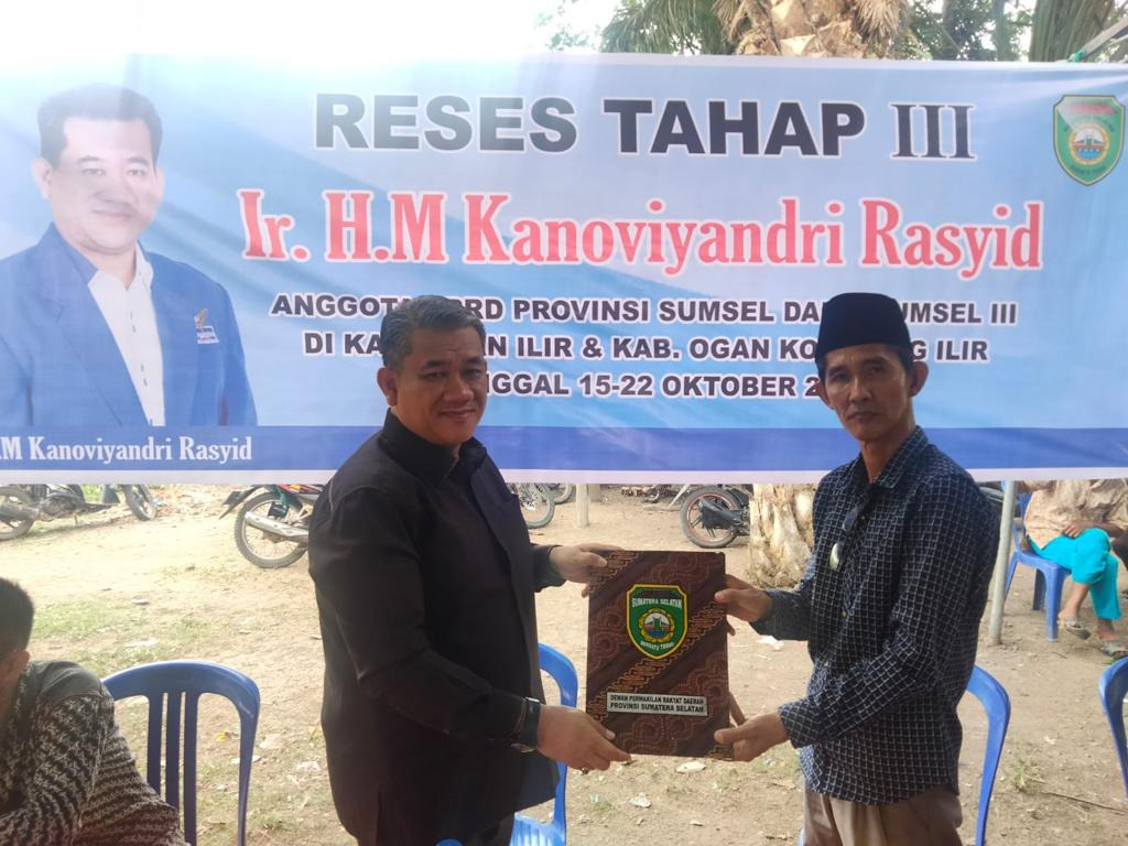 Untuk Reses III terakhir di Kabupaten Ogan Ilir ini, Ir. HM Kanoviyandri Rasyid menyinggahi Desa Meranjat Ilir Kecamatan Indralaya Selatan. Di desa ini, alumnus SMAN 1 Kota Palembang Angkatan 88 itu menerima tiga aspirasi.