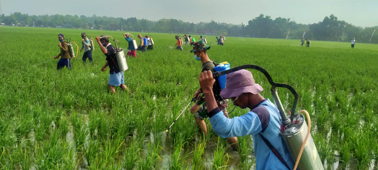 Bojonegoro – Kades Ngrancang, Sudadi, merasa sangat terbantu, karena mendapatkan bantuan Sekelompok tentara yang membasmi hama tanaman padi milik warganya disawah yang saat ini mendapatkan gangguan hama wereng.