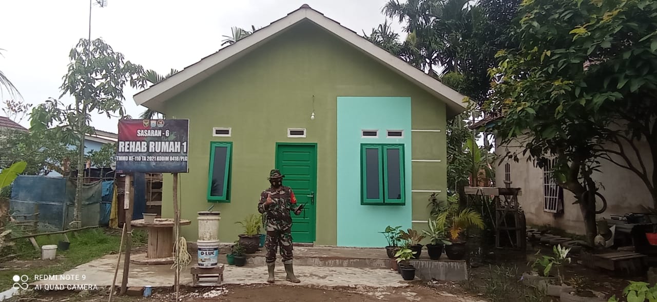 PALEMBANG,KODIM0418 – Rehap pembangunan rumah tak layak huni (RTLH) yang menjadi program TMMD ke 110 Kodim 0418 Palembang, sudah selesai, khususnya rumah Kalena.