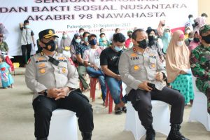 Kliksumatera.com, PALEMBANG- Kapolda Sumsel, Irjen Pol Drs Toni Harmanto MH hadiri kegiatan Serbuan Vaksinasi dan Bakti Sosial Nusantara AKABRI 98 NAWAHASTA di Kelurahan Talang Jambe, Kecamatan Sukarami Palembang, Selasa (21/9).