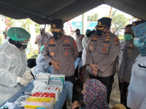Kliksumatera.com, PALEMBANG- Kapolda Sumsel Irjen Pol Prof Dr Eko Indra Heri S MM didampingi PJU Polda Sumsel Kapolrestabes Palembang Kombes Pol Irvan Prawira, Lurah Sei Lais, Camat dan Kapolsekta Kalidoni melaksanakan Baksos dan Bakkes di Kel Sei Lais Kec Kalidoni Palembang, Rabu 31/03/2021.