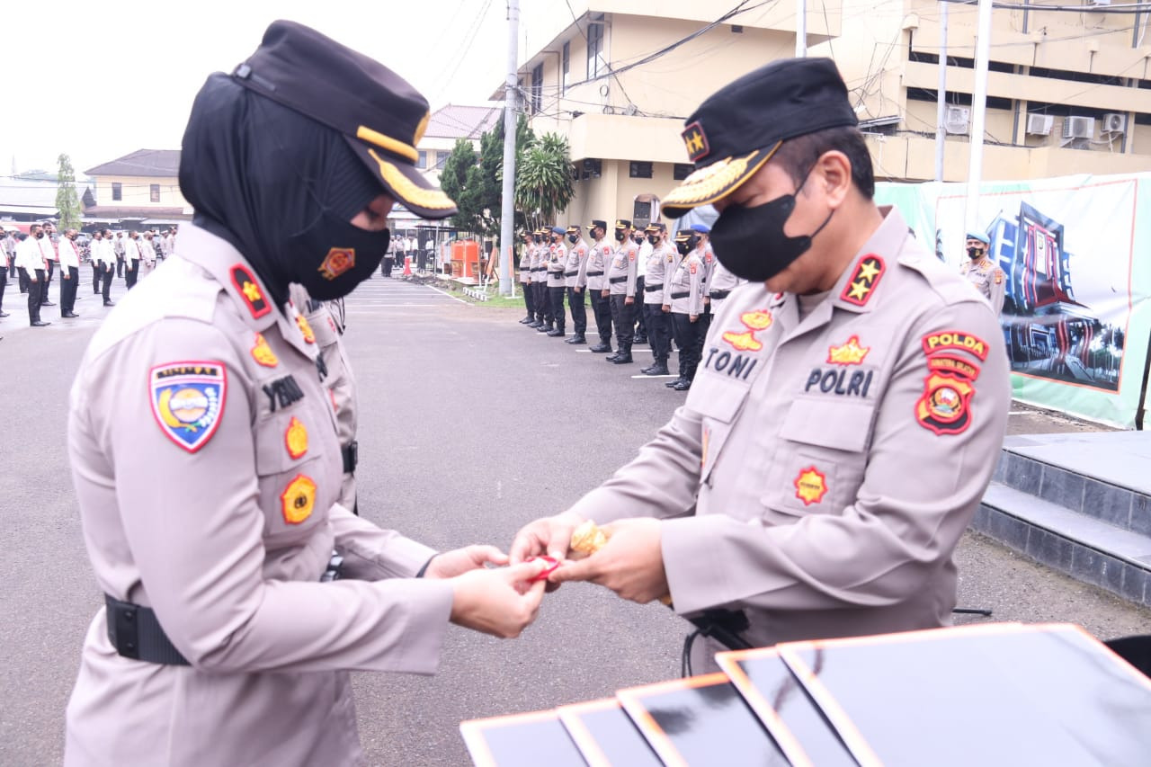 Pada kesempatan tersebut Kapolda memberikan PIN EMAS Kapolda dan Pemberian Penghargaan kepada personel yang berprestasi. ”Mudah-mudahan ini dapat juga diberikan kepada Satker Satker Polda, baik Personel Polri maupun PNS dan ini hendaknya disertai dengan promosi jabatan, jenjang karier, serta pendidikan atau dikbang,” tandas mantan Kapolda Sumbar tersebut.