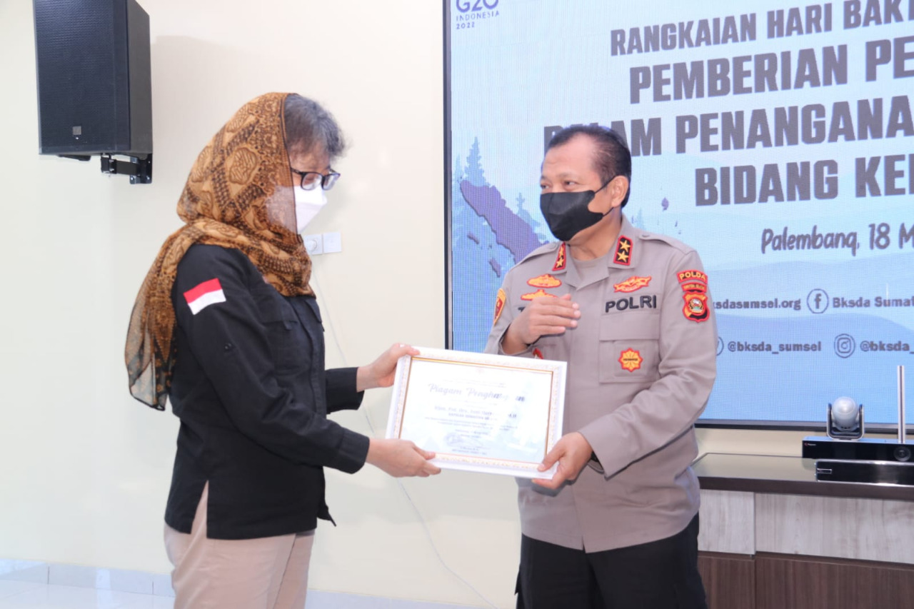 Drh Indah menyebutkan bahwa penghargaan tersebut diberikan kepada Polda Sumsel atas keberhasilan menangani tindak pidana di bidang kehutanan sekaligus dalam rangkaian Hari Bakti Rimbawan ke-39. “Terima kasih yang setinggi-tingginya kepada Kapolda Sumsel dan jajarannya serta aspirasi dari kami Kementerian Lingkungan Hidup dan Kehutanan yang turut mendukung dalam melestarikan lingkungan hidup di negeri yang tercinta ini,” ujar Direktur Konservasi Keanekaragaman Hayati KLHK BKSDA RI.