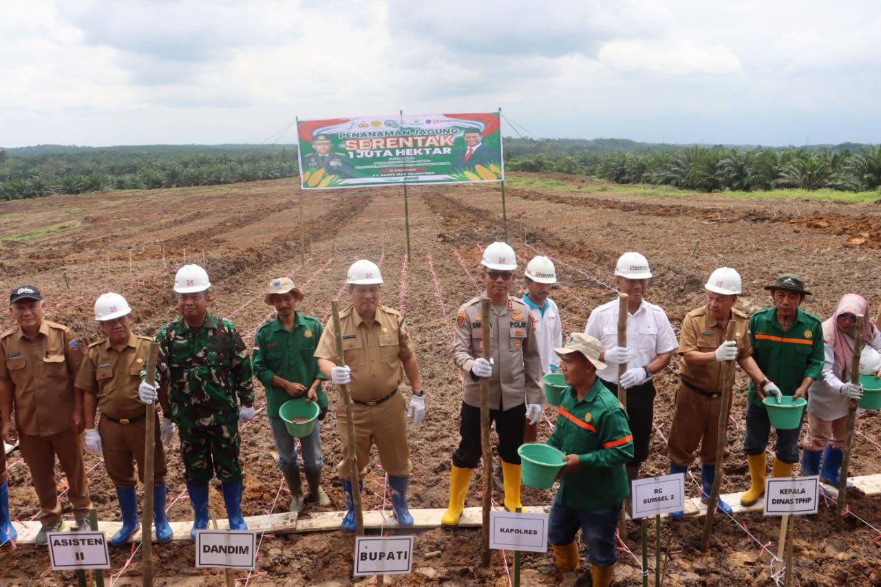 Kliksumatera.com, LAHAT- Selasa, 21 Januari 2025, Kapolres Lahat AKBP God Parlasro S Sinaga SH SIK MH, didampingi Penjabat Bupati Lahat, yang diwakili Asisten I Rudi Tamrin, Kepala Dinas Pertanian dan Perkebunan Lahat, manajer PT SMS, Dandim 0405 yang diwakili Danramil Kikim, para Camat Kikim Area dan unsur terkait lainnya, mengikuti dan melaksanakan, program penanaman jagung serentak 1 ( satu ) juta hektar secara Zoom Metting dengan Menteri Pertanian dan Kapolri Jendral Polisi Listyio Sigit Prabowo SIK MSi, yang berlokasi di areal kebun sawit milik PT. SMS Desa Wono Rejo Kecamatan Kikim Barat Lahat.