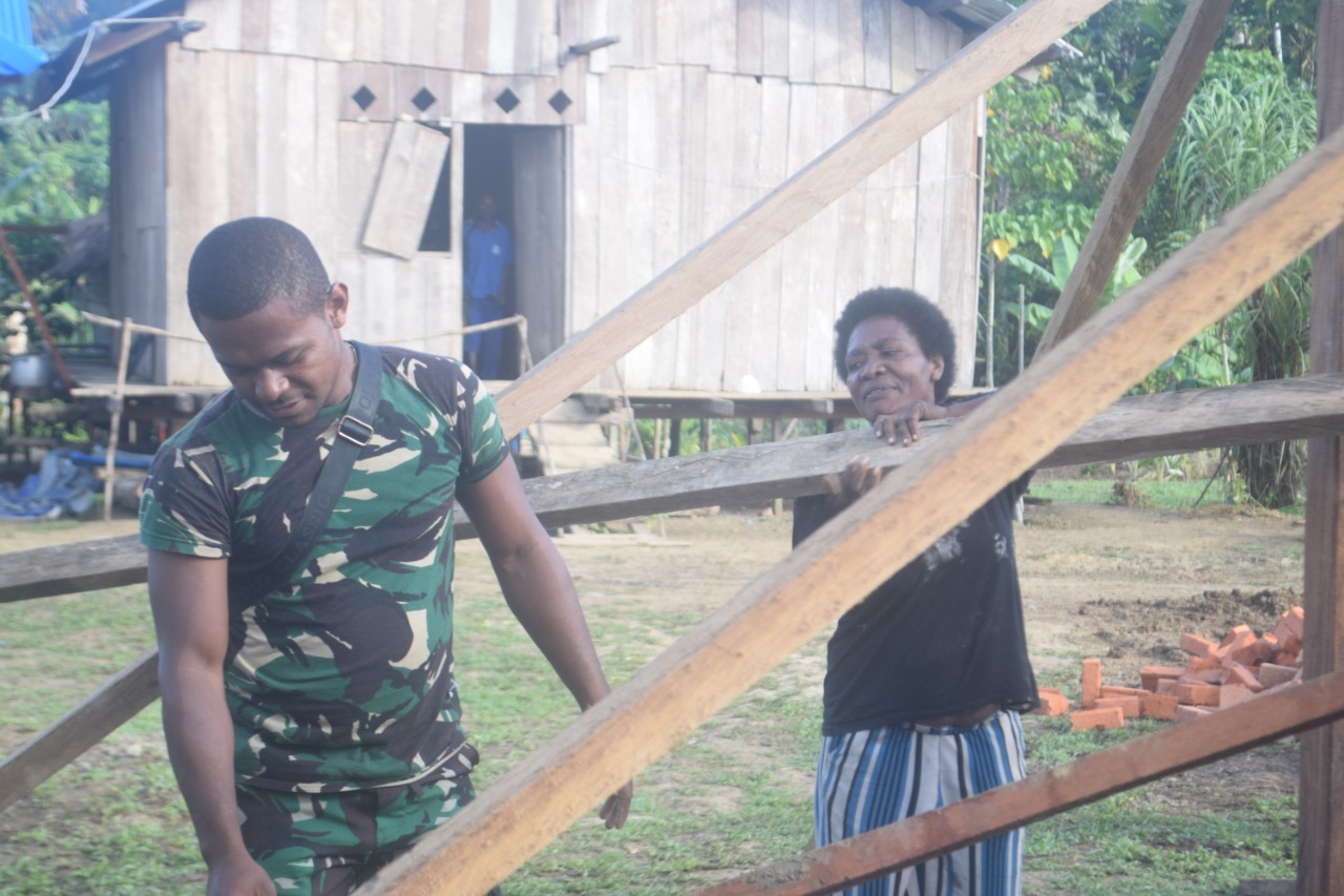 Sorong, Papua Barat,- Satgas TNI MANUNGGAL MEMBANGUN DESA (TMMD) Ke 110 Kodim 1802/Sorong dengan membangun sejumlah sasaran fisik maupun non fisik yang berada di kampung Kamlin, Distrik Wemak, Kabupaten Sorong.Sabtu(06/03/2021)