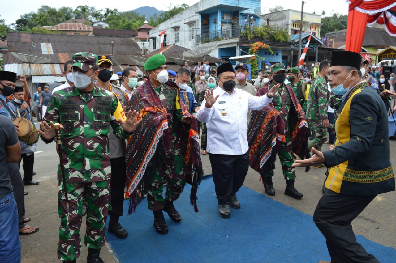 Dansatgas mendampingi Bupati Tapsel Dolly Putra Parlindungan Pasaribu menyambut kedatangan dua Jenderal TNI AD ke lokasi TMMD Kodim Tapsel.