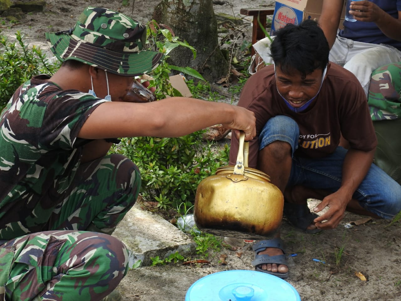 Pemandangan semacam ini selalu tersuguh dalam setiap titik sasaran fisik, meskipun terkadang mereka hanya menikmati secangkir kopi bahkan tidak jarang dalam satu cangkir untuk diminum secara bersama-sama.