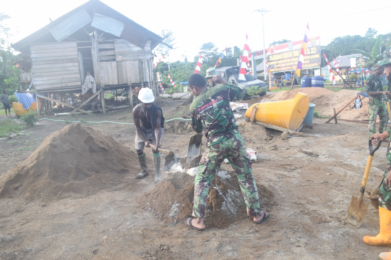 Sorong, Papua Barat. – Pelaksanaan TNI Manunggal Membangun Desa (TMMD) Ke 110 Kodim 1802/Sorong, di Kampung Kamlin Distrik Wemak Kabupaten Sorong pada Rabu 17 Maret 2021 sudah memasuki hari ke lima belas lewati 60 persen dikerjakan.