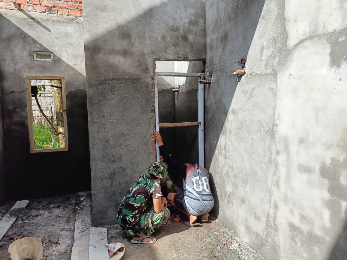 Dandim 0404/Muara Enim Letkol inf Nugraha, S.H..M.I.P Melalui Danramil’ 404-01/Gelumbang Kapten inf Agus Sonjaya menyampaikan pembangunan rumah tidak layak huni yang dilakukan prajurit TNI dalam Satuan Tugas (Satgas) TMMD ke 120 Kodim 0404/Muara Enim hampir mendekati 85%