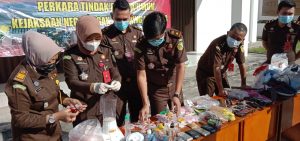 Kajari OKUT Dr. Akmal Kodrat S.H.,M.Hum melalui Kasi Intel Kejari OKUT Achmad Arjansyah Akbar, S.H.,M.H didampingi Kasi Barang Bukti dan Barang Rampasan Arianti Maya Puspadewi, S.H. menjelaskan, bahwa perkara yang tertinggi masih didominasi perkara narkoba. “Dari 105 barang bukti yang kita musnahkan, perkara narkotika masih mendominasi,” tegas Ancha.