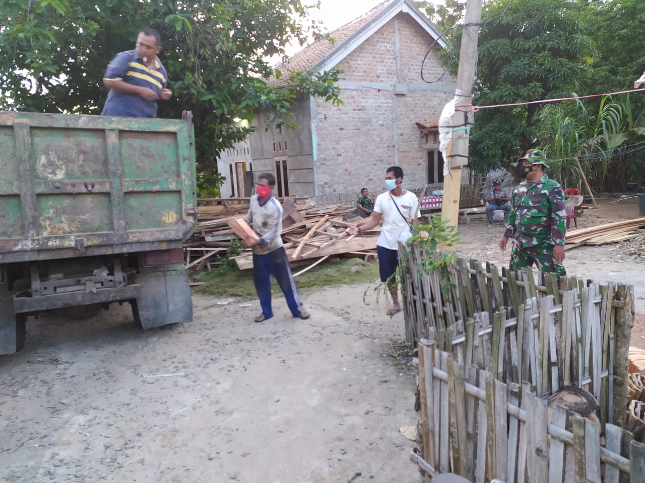 WAY KANAN – Kekompakan dan kebersamaan antara Prajurit TNI Kodim 0427/Way Kanan yang tergabung dalam Personel Pra TMMD ke-111 bersama warga, kembali terlihat saat kegiatan menurunkan material genteng di sasaran RTLH milik Ibu Misnariah warga Kampung Negeri Batin Kecamatan Umpu Semenguk Kabupaten Way Kanan. Sabtu sore (8/6/2021)