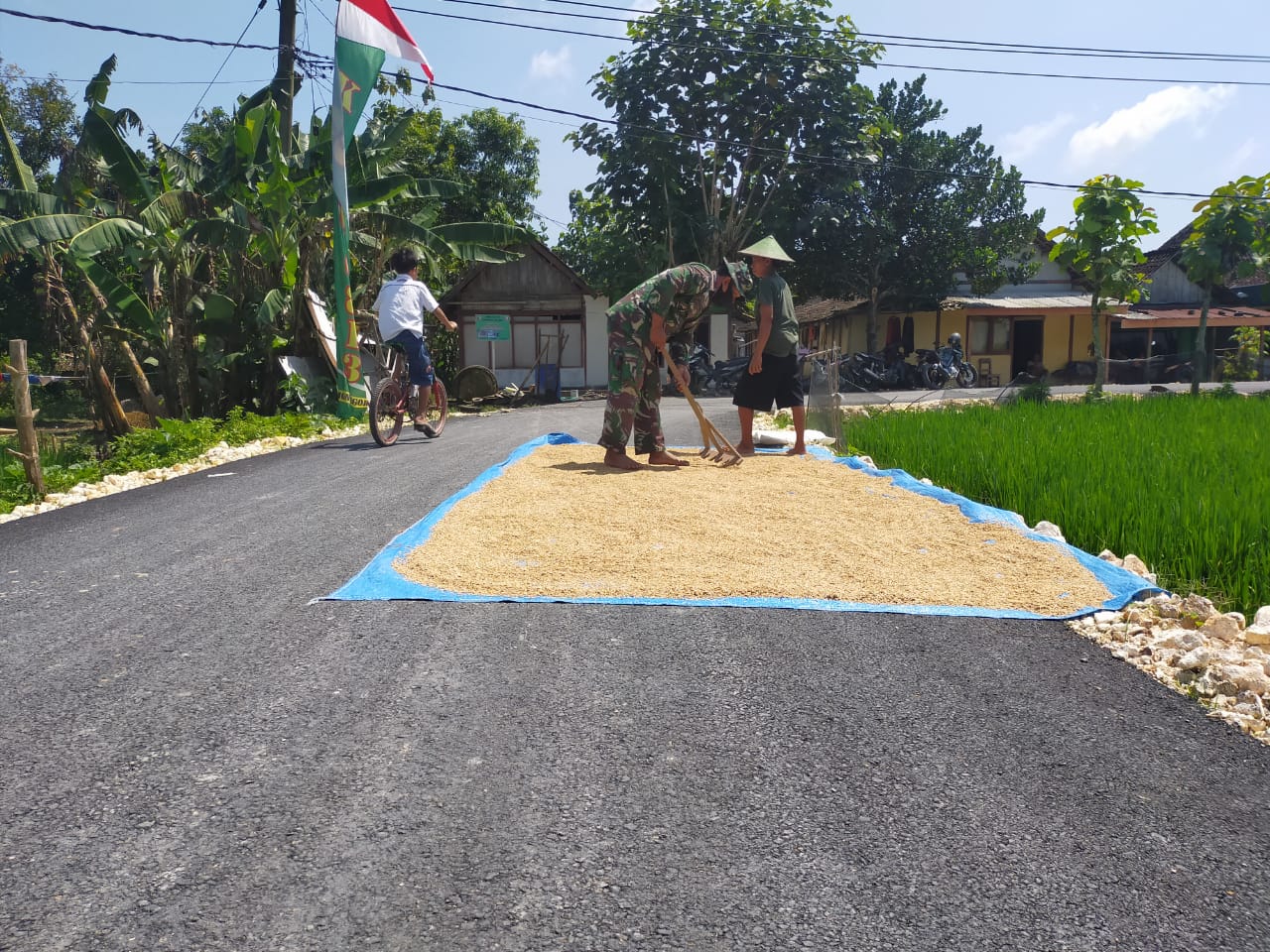 “Saya sedang membantu menjemur gabah di warga sekitar,” ujar Sertu Jufri, Minggu (21/3/2021).