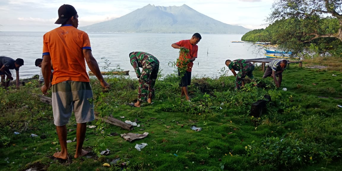 Kegiatan pembersihan sekitar pesisir pantai adalah kegiatan rutin yang di lakukan anggota Satgas TMMD Ke 111 Kodim 1501/Ternate di Kelurahan Tafaga Kecamatan Moti.