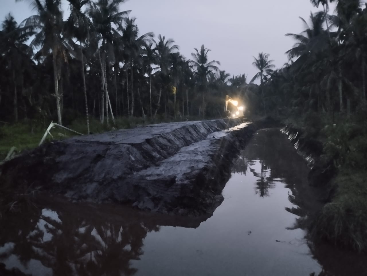 Tanjab – Memasuki hari ke 10 Operasi TMMD ke 118 tahun 2023 Kodim 0419/ Tanjab, Satgas TMMD bekerja sama dengan masyarakat bergotong royong membuka jalan baru dengan bantuan alat berat excavator mengejar capaian/progres sasaran utama pembukaan jalan baru sehingga saat ini sudah mencapai 67 % atau 8.000 m. Capaian ini tidak terlepas dari semangat Satgas TMMD bersama masyarakat membantu alat berat, bahkan sampai lembur bila melihat ada peluang kerja. Adapun personil satgas yang diberi tugas sebagai pengawas pekerjaan tersebut yaitu Sertu Daniel mengatakan bahwa, kami tiap hari bersama- sama warga membantu alat berat agar dalam bekerja tidak terhalang apapun itu seperti menyiapkan miting yaitu pohon kelapa sebagai landasan alat berat saat kerja agar tidak terpuruk karena lahannya gambut, bahkan warga secara bergantian lembur sampai malam, itupun bila air tidak pasang, demikian tutur Sertu Daniel. Hal yang sama diungkapkan oleh Ketua BPD Desa Sungai Tawar bahwa memang daerah kami ini adalah tanah gambut dan masih dipengaruhi air pasang surut, sehingga ini menjadi pertimbangan kami untuk lembur mengejar hasil kerja pembukaan jalan baru ini, ini harus selesai sampai ujung akhir Teluk Gora sebagai finish. Alhamdulillah selama bekerja belum ada halangan atau kendala, masyarakatnya semangat membantu satgas TMMD dalam menuntaskan jalan baru ini, sehingga kami nanti bisa gunakan secepatnya, inilah yang kami tunggu-tunggu pak, berpuluh-puluh tahun akses jalan ini. Kami juga mau sampaikan bahwa jalan ini disamping sebagai sarana untuk keluar masuk warga antar anak sekolah, keluarkan hasil kebun juga yang tidak kalah pentingnya sebagai akses mobilisasi bila terjadi kebakaran hutan dan lahan. Ya, kami terimakasih banyak kepada bapak TNI juga Pemda Tanjab Timur yang sudah membantu kami membuatkan jalan baru ini, ini sangat memberikan manfaat yang banyak, dapat meningkatkan kesejahteraan masyarakat Desa Sungai Tawar. (Pendim)