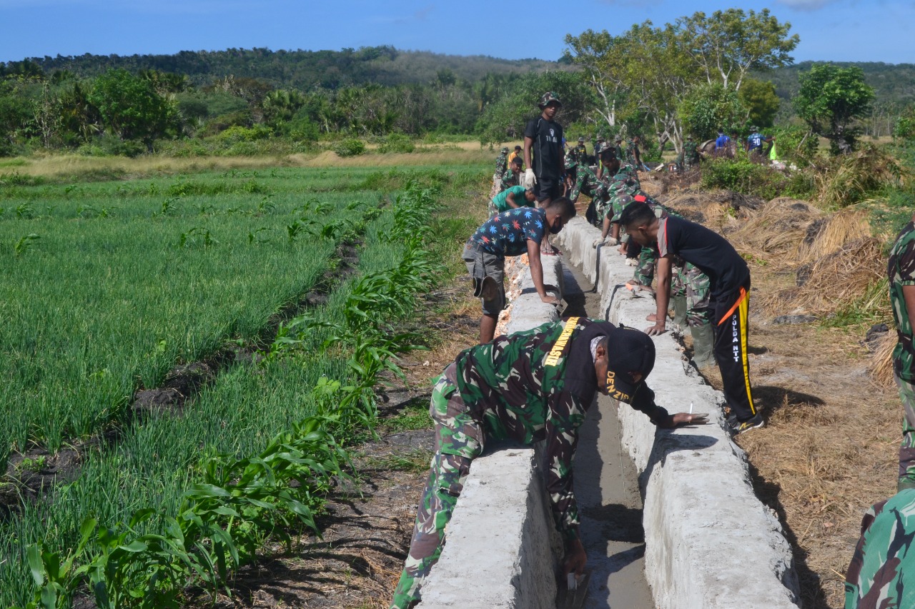 Kerja sama yang baik ditimbulkan oleh Satgas TMMD ke-111 Kodim 1627/Rote Ndao. Personel Satgas TMMD bersama masyarakat desa lekona gotong royong membangun Saluran Irigasi .