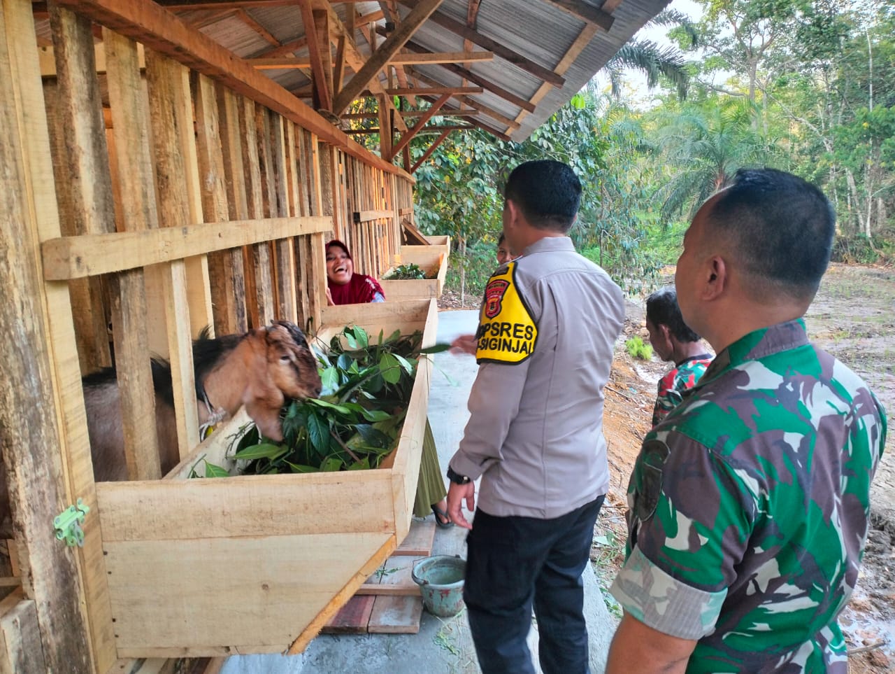 Kapolres Sarolangun didampingi Koordinator lapangan dan anggota Satgas melihat langsung beberapa titik sasaran TMMD seperti ketahanan pangan, kandang kambing, sumur bor hingga pembangunan rumah tidak layak huni.