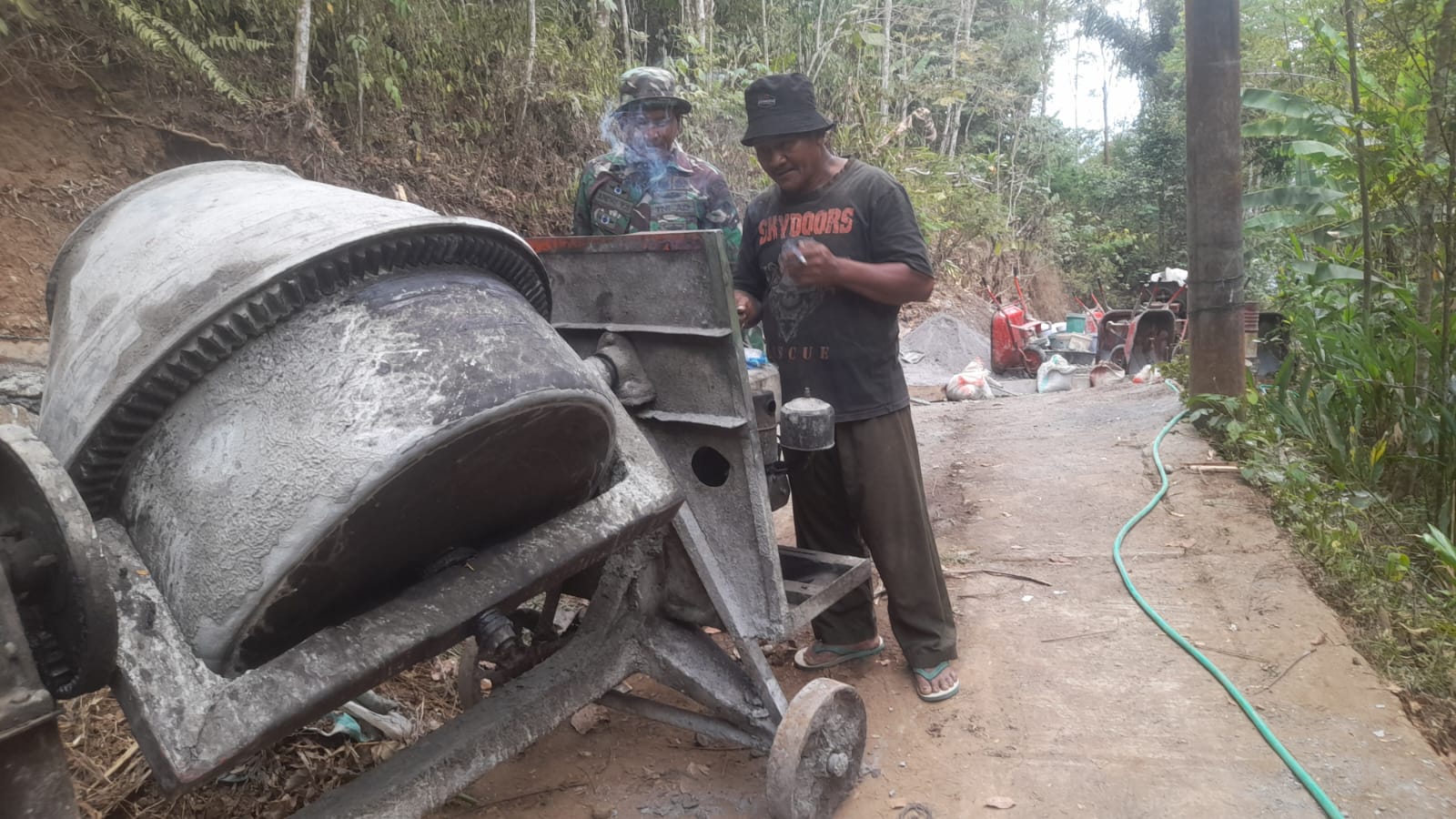 Alhamdullah kata Pak karto selain mendapat fasilitas pembangunan rabat beton yang sedang berlangsung ia juga mendapat saudara baru yaitu para satgas yang tiap hari berbaur bersama mereka tuturnya.
