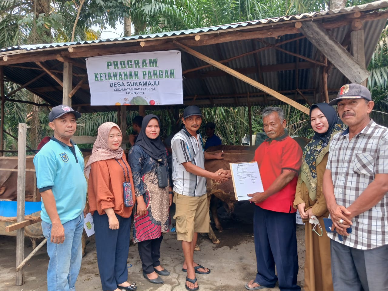 Kliksumatera.com, SEKAYU- Desa Sukamaju Kecamatan Babat Supat Kabupaten Musi Banyuasin (Muba) Provinsi Sumatra Selatan menyerahkan 12 ekor sapi pada Kelompok Penggemukan Hewan Ternak Sapi, Selasa (10/9/24) lalu.